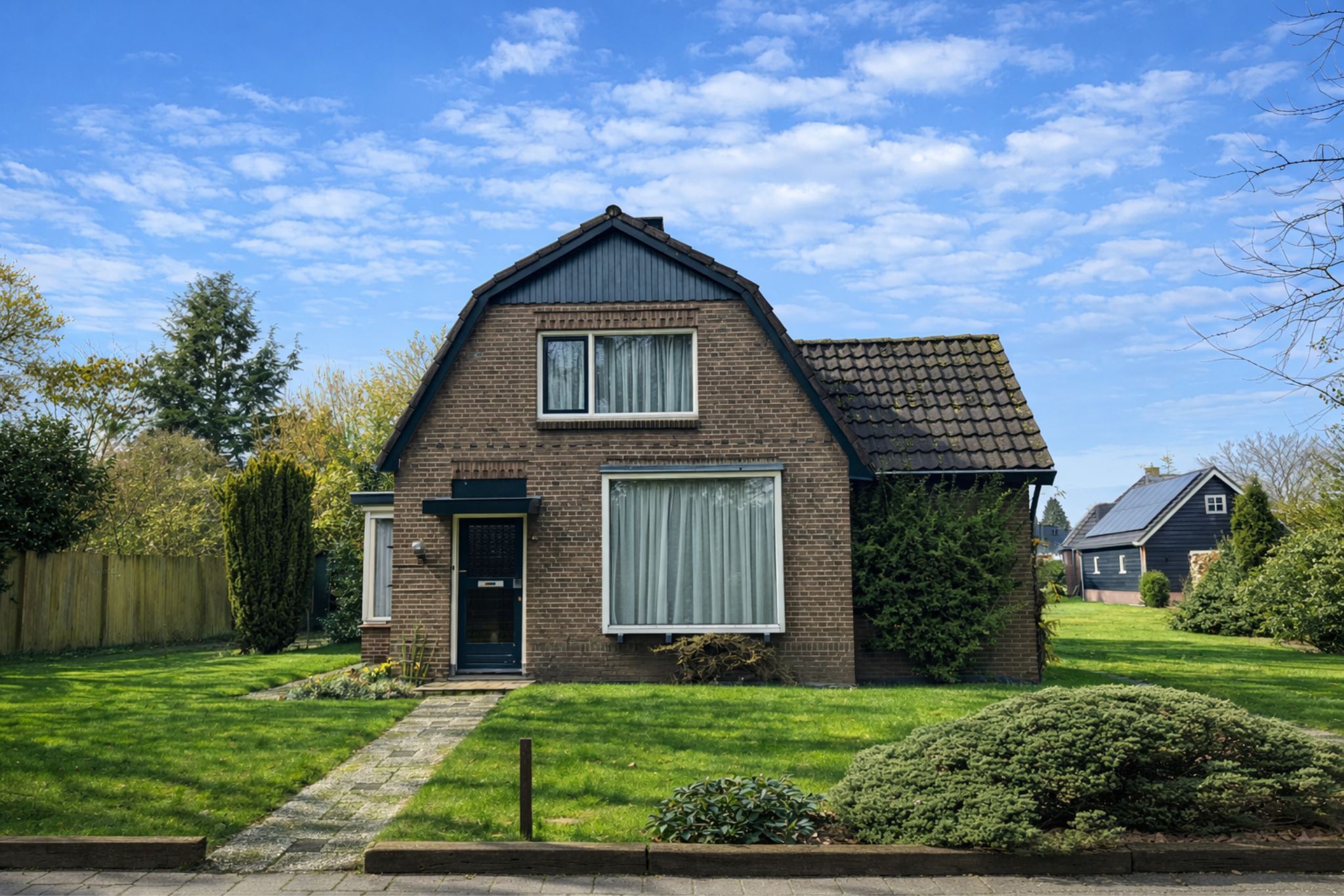 Het huis staat op een fors perceel met een fraaie tuin. Achter het huis vindt u een vrijstaande garage met aangrenzende schuur. Rondom het grote gazon liggen goedgevulde borders en bloemperken, waardoor het in alle seizoenen schitterend is.