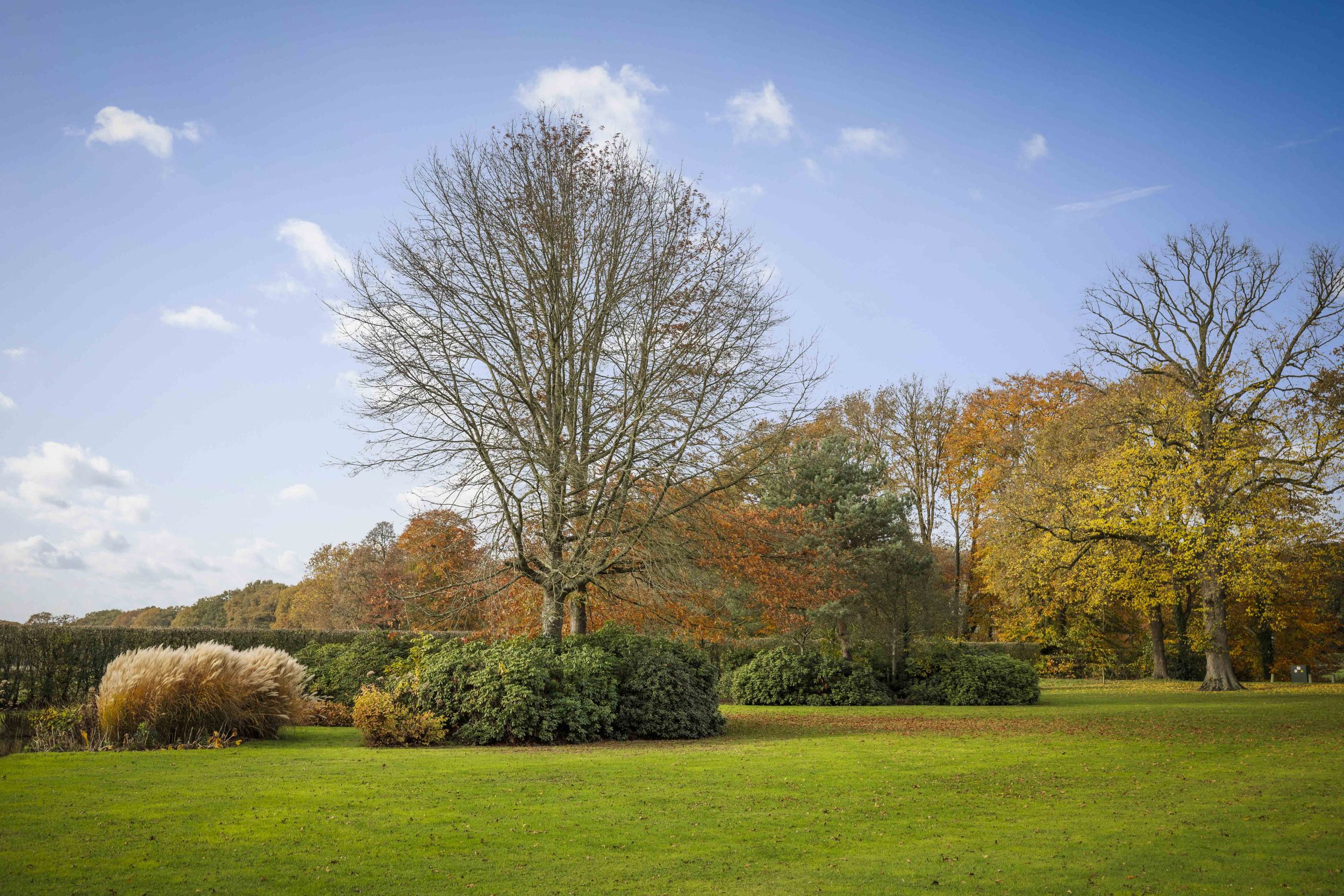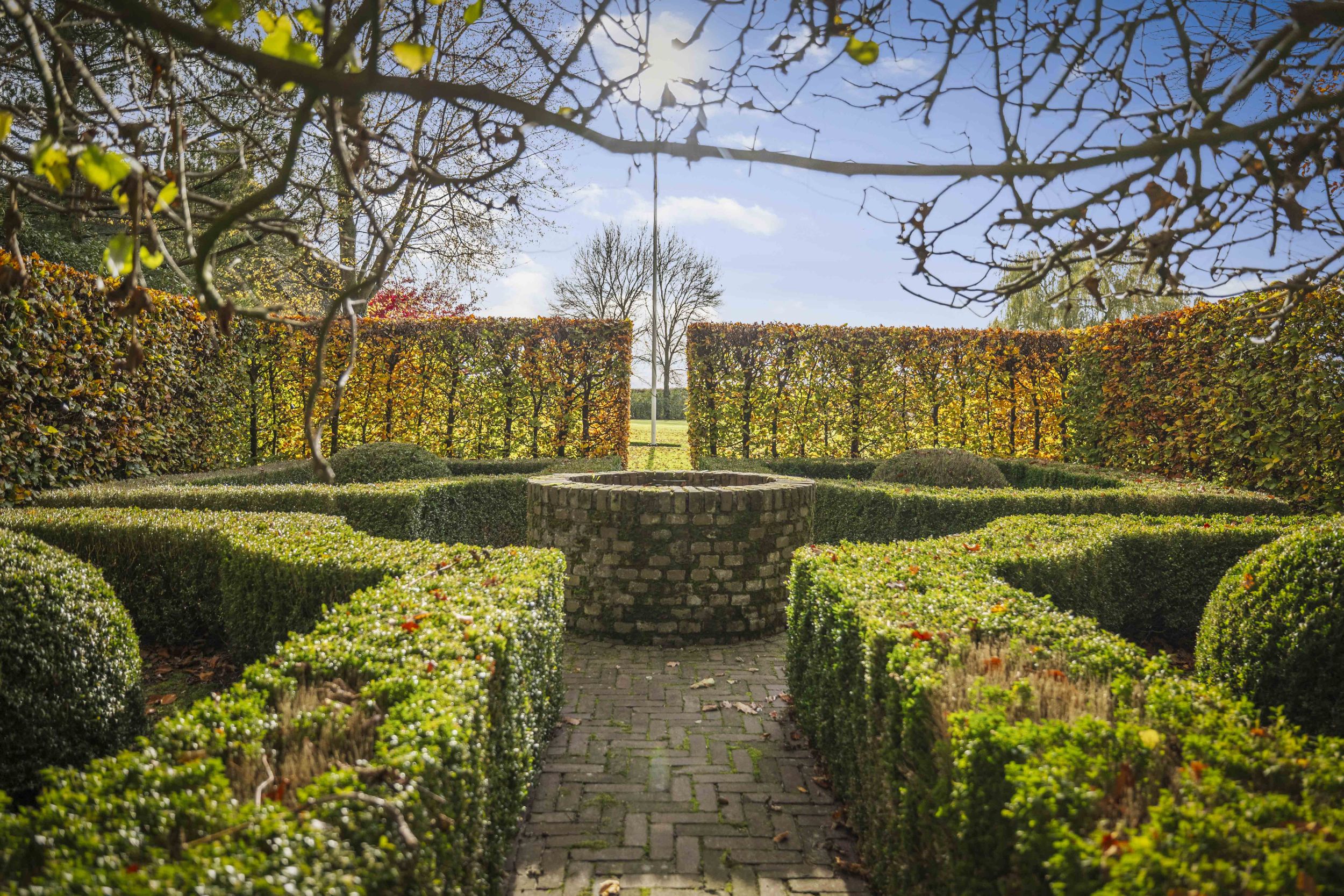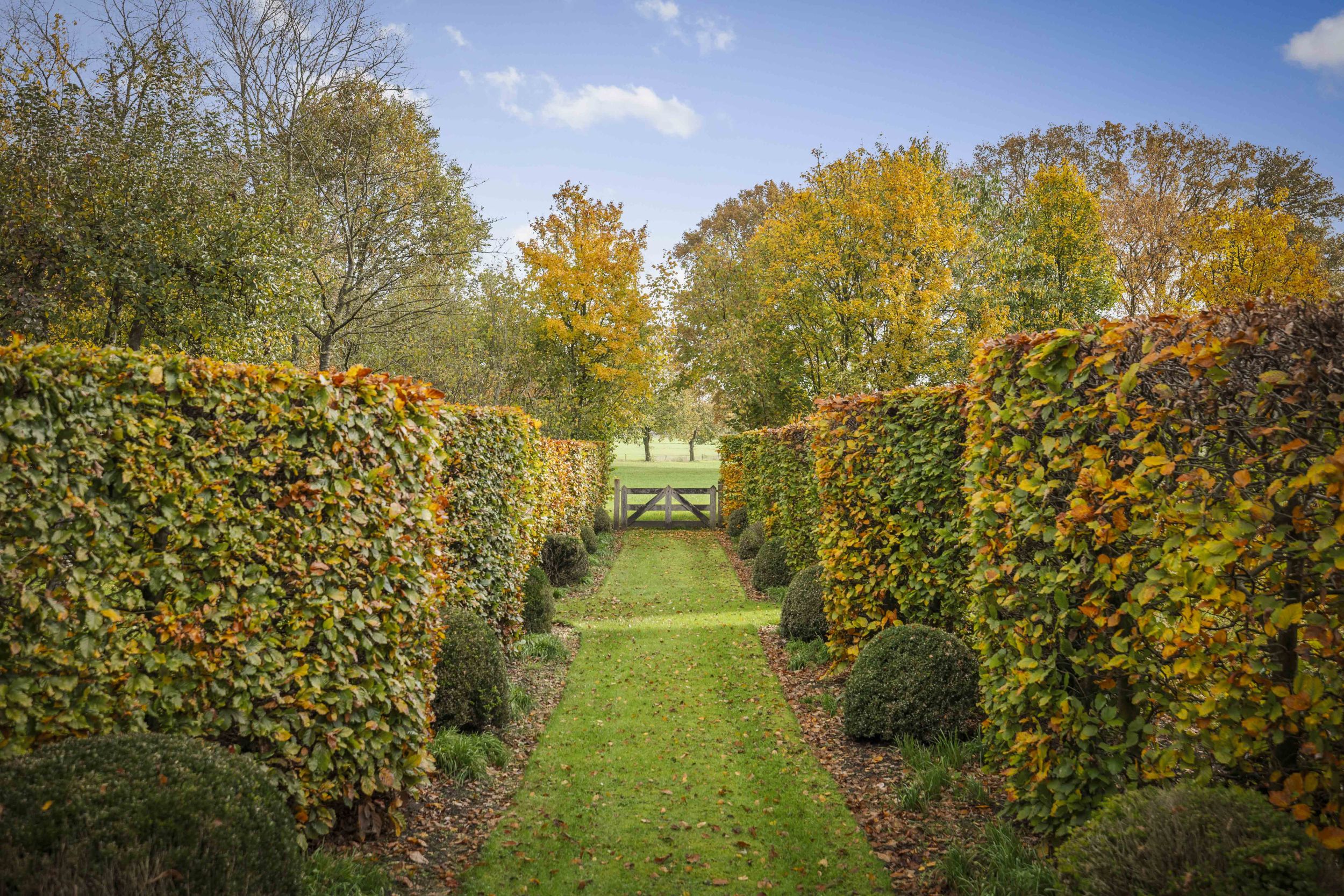 De golvende beukenhagen doen denken aan de klassieke fruitmuren zoals die een vast nummer zijn in de Engelse tuinen en de corridor brengt u bij het speelgazon waar een partijtje kan worden gevoetbald, op de trampoline kan worden gesprongen of een potje verstoppertje kan worden gespeeld.