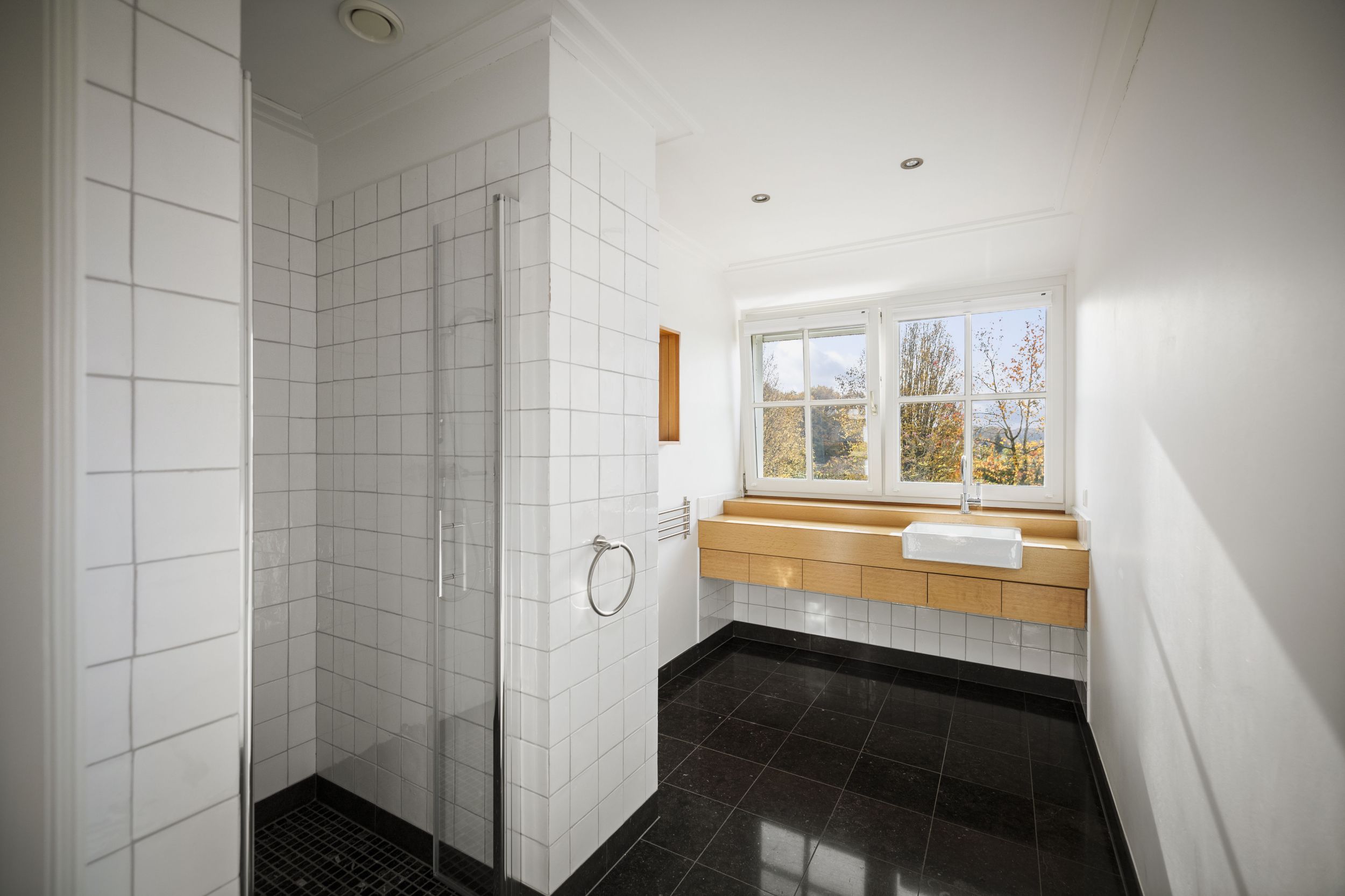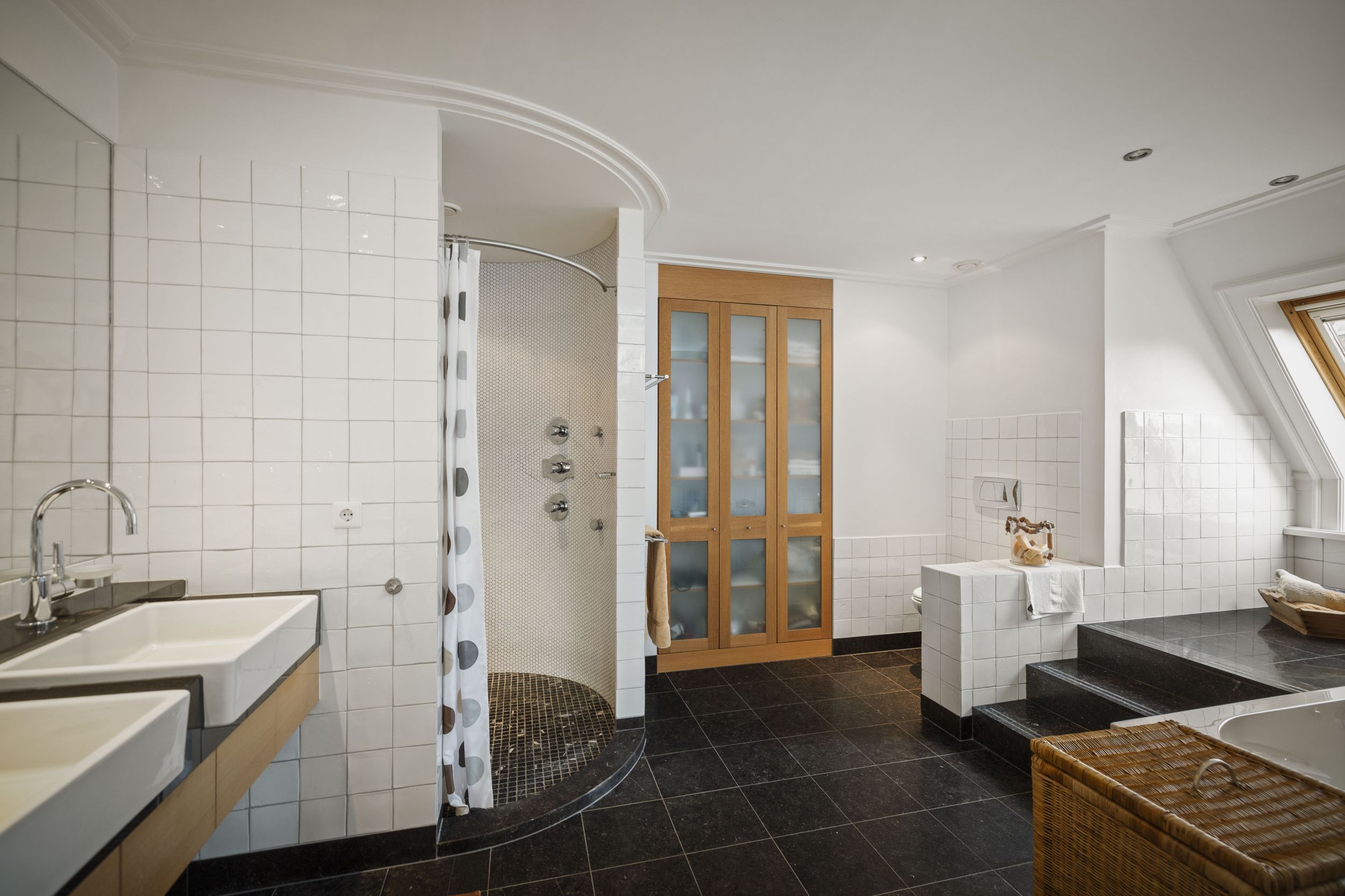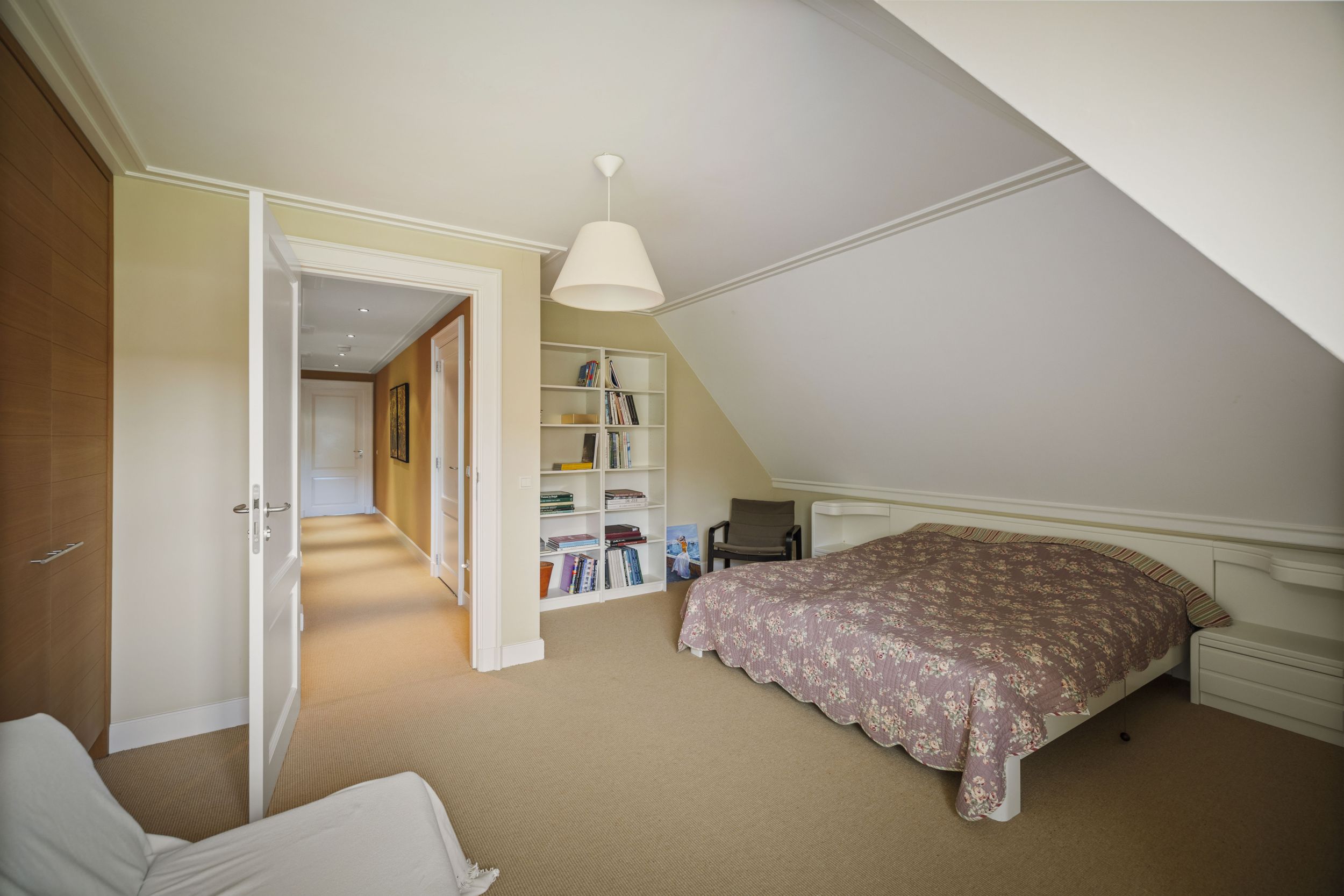 Voorts, op de overloop, een tweede badkamer met wastafelmeubel, inloopdouche, diverse inbouwkasten en een separate WC.