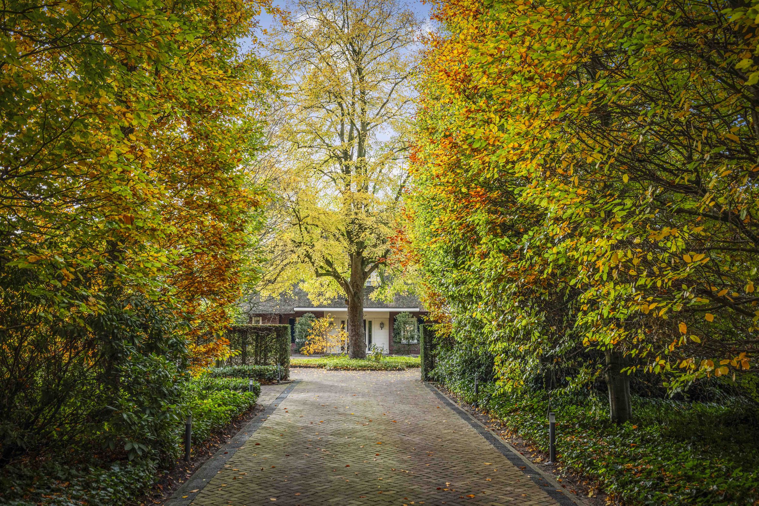 Het huis wordt voorafgegaan door een grote rotonde met in het midden een prachtige lindeboom, als teken van geluk en huiselijke trouw.